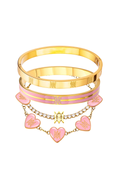 Delicate yet eye-catching, this bundle features a series of glossy blush enamel hearts framed in radiant gold. Each charm is finished with the signature Mektoure emblem, creating a look that’s both playful and iconic. Designed with an adjustable chain for the perfect fit, this piece adds a soft pop of color and romance to your everyday style.